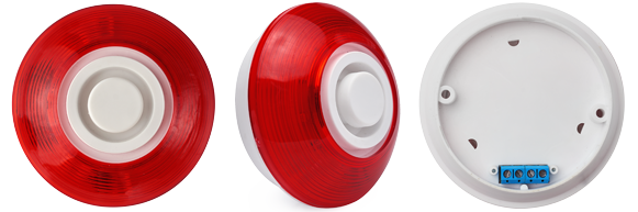 Светозвуковой, строб, красного цвета, раздельное включение; 105 дБ, U-пит.12В, I-потр. 55мА; IP52, t-раб.-30...+55°С, 90x90x43 мм