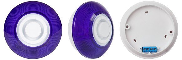 Светозвуковой, строб, синего цвета, раздельное включение; 105 дБ, U-пит.12В, I-потр. 55мА; IP52, t-раб.-30...+55°С, 90x90x43 мм