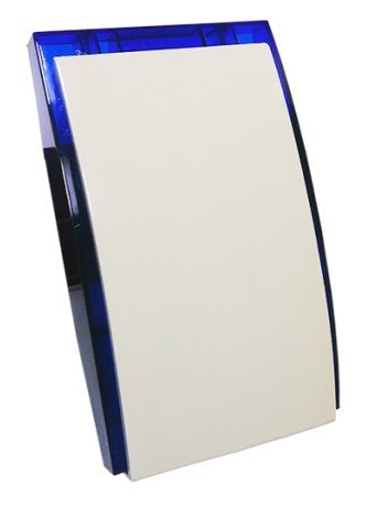 Мощный свето-звуковой оповещатель (строб-вспышка + сирена), 115 дБ, U-пит. 6...14В, I-пит. 450 мА, однотональный, IP45, t-раб. -30...+50°C, габ.размеры 252x148x64 мм, белый, синяя линза