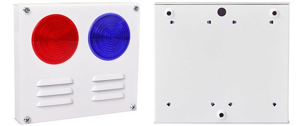 Светозвуковой, синего.красного цвета, раздельное включение; 110 дБ, U-пит.12В, I-потр. 20мА(свет) 57мА(звук) на каждый оповещатель; IP52, t-раб.-30...+55°С, 125x142x36 мм. Антивандальный металлический корпус