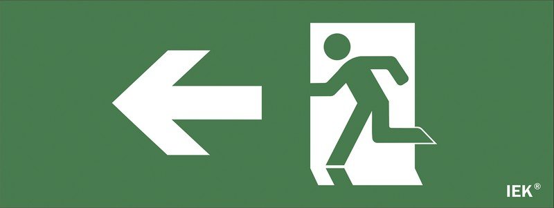 Самоклеящаяся этикетка "Фигура/стрелка влево" для ДПА IP20/54, размер знака 240х90 мм, подходит для нанесения на аварийные светильники ДПА 2101, 2104, 2105, 5030, 5032, 5040, 5043, цвет зеленый