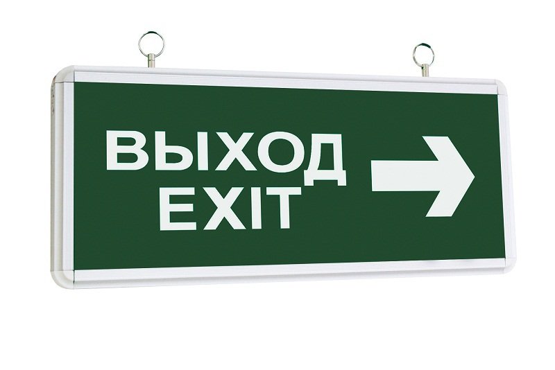 Светильник аварийный светодиодный, двусторонний, "ВЫХОД-EXIT", U- пит. 220 В, Р-потр. 3 Вт, встроенный Ni-Cd АКБ 1.2 В / 0.5 Ач, IP20, t-раб. -10…+40°С, габ.размеры 363х152х23 мм