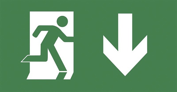 Пиктограмма "ВЫХОД/стрелка вниз" PVC для ССА 3000, подходят для ССА 3001 и 3002, размер знака 350х130 мм, цвет зеленый