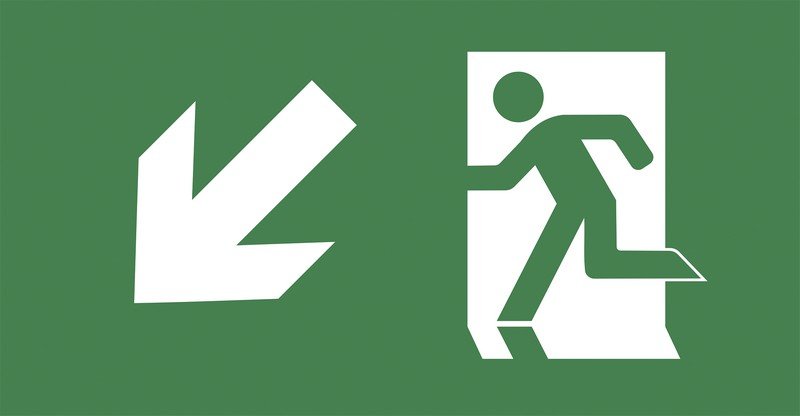 Пиктограмма "ВЫХОД/стрелка налево вниз" PVC для ССА 3000, подходят для ССА 3001 и 3002, размер знака 350х130 мм, цвет зеленый