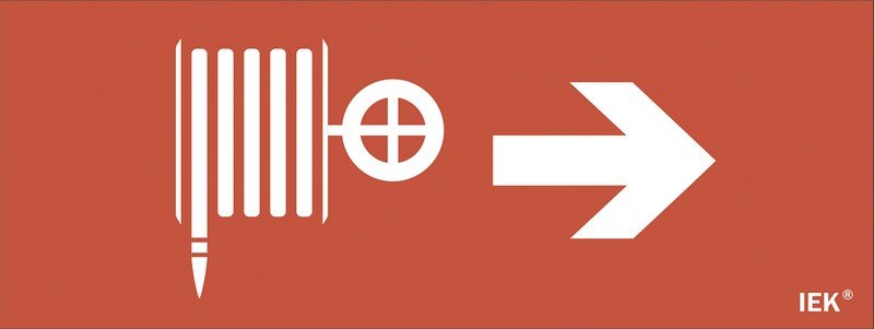 Самоклеящаяся этикетка "Пожарный кран/стрелка направо" для ССА 1005, размер знака 350х130 мм, цвет красный