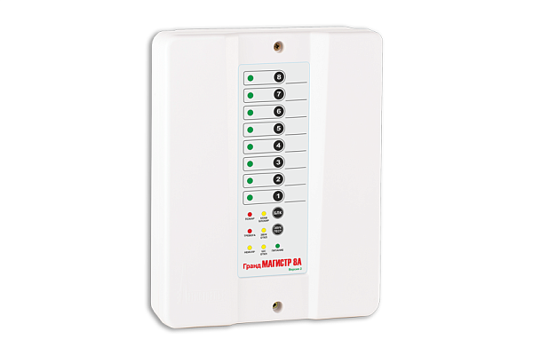 8 ШС, управление "Touch Memory" или кнопками с лицевой панели, выход питающего напряжения 12 В до 0,3 А; программируемая логика работы реле ПЦН и ШС, контролируемые на обрыв и К.З. выходы оповещателей, U-пит. 220 В, вход внешнего РИП, под АКБ 12 В /2.2 Ач, t-раб. -30...55 °С, 200х187х65 мм. Пластиковый корпус.