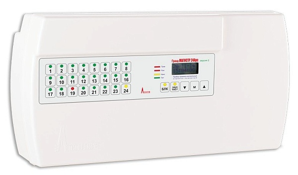 ППКОП с встроенным SMS модулем (2 SIM); 24 ШС; встроенная клавиатура для управления и программирования; ЖК-дисплей; регистратор на 1024 события; 3 выхода ПЦН; 3 контролируемых выхода "ОК"; порт ТМ; U-пит.130...280 В; под АКБ 12 В / 7 Ач; I-потр.210 мА; вход внешнего РИП 12 В; выход питания внешней нагрузки 12 В / 1 А; t-раб.+5...+50°С, 322х167х89 мм