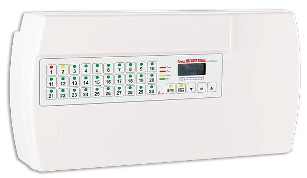 ППКОП с встроенным SMS модулем (2 SIM) с разъемом SMA для подключения внешней антенны; 30 ШС; встроенная клавиатура для управления и программирования; ЖК-дисплей; регистратор на 1024 события; 3 выхода ПЦН; 3 контролируемых выхода "ОК"; порт ТМ; U-пит.130...280 В; под АКБ 12 В / 7 Ач; I-потр.210 мА; вход внешнего РИП 12 В; выход питания внешней нагрузки 12 В / 1 А; t-раб.+5...+50°С, 322х167х89 мм