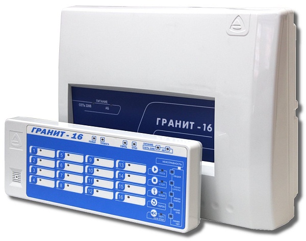 С выносной панелью индикации и управления, 16 ШС, 4 выхода ПЦН, 4 контролируемых выхода "ОК", вход TouchMemory, напряжение питания 220 В, под АКБ 7 Ач, IP20, диапазон рабочих температур -30…+50°С, 285х105х33 мм