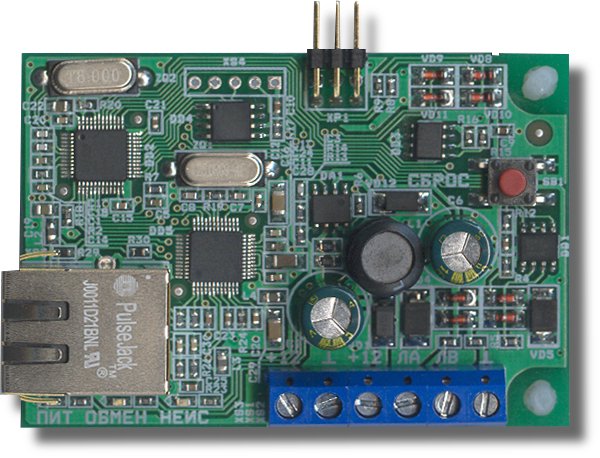Комбинированный сетевой адаптер для приборов Гранд Магистр версии 3, 1 порт RS-485, 1 порт Ethernet, напряжение питания 12…14 В, ток потребления 200 мА, диапазон рабочих температур -30…+55°С, габаритные размеры 70х50х20 мм