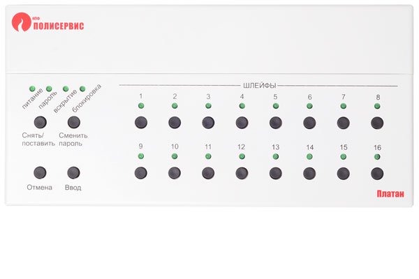 16 зон (8 - сухие контакты + 8 по RS-485)