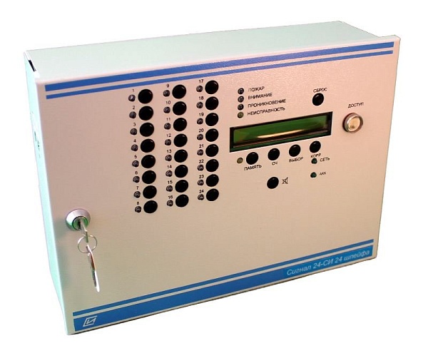 Прибор приемно-контрольный охранно-пожарный, 24 ШС, U-шс.15...22 В, I-шс.3 мА, три контролируемых выхода оповещения, U-пит.220 В, P-потр.10 ВА, под АКБ 12 В/12 Ач, TouchMemory, встроенные речевые сообщения, RS-485 (для работы в составе СПИ "Сирень-СИ"), степень защиты оболочкой IP20, диапазон рабочих температур -10…+55°С, габаритные размеры 350х250х120 мм