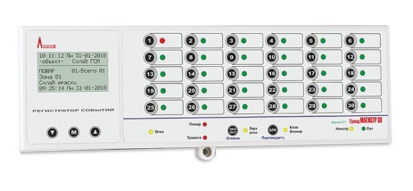 Дополнительная клавиатура для ППКОП "Гранд Магистр" версия 3.1 с ЖК-дисплеем с подсветкой, 16 зон, питание от ППКОП 12В/0.04А, t-раб. +5…+55°С, габаритные размеры 295х95х32 мм