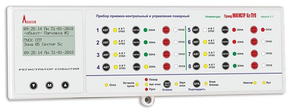 Дополнительная клавиатура для ППКУП "Гранд Магистр ПУ" версия 3.1 с ЖК-дисплеем с подсветкой, 8 зон, питание от ППКОП 12В/0.04А, t-раб. +5…+55°С, габаритные размеры 295х95х32 мм