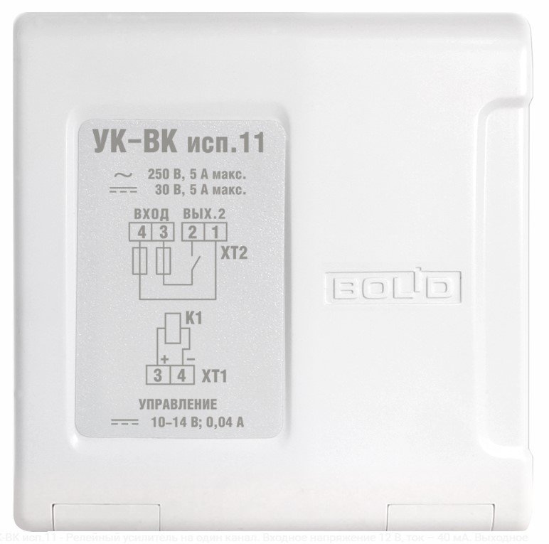 Устройство коммутационное; 1 реле, контакты на замыкание; U-упр.12 В; I-упр.40 мА; U-коммут. до 250 В; I-коммут.до 5 А; IP30; t-раб.-30...+50°С; 102х107х39 мм. На DIN рейку.