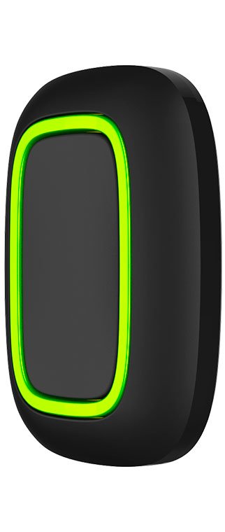 Радиоканальная тревожная кнопка (протокол Jeweller), f-раб. 868 МГц, дальность радиосвязи до 1300 м, элем.питания CR2032 (3В) в комплекте, IP54, t-раб. -10...+40°С, габ.размеры 47х35х13 мм. Цвет черный