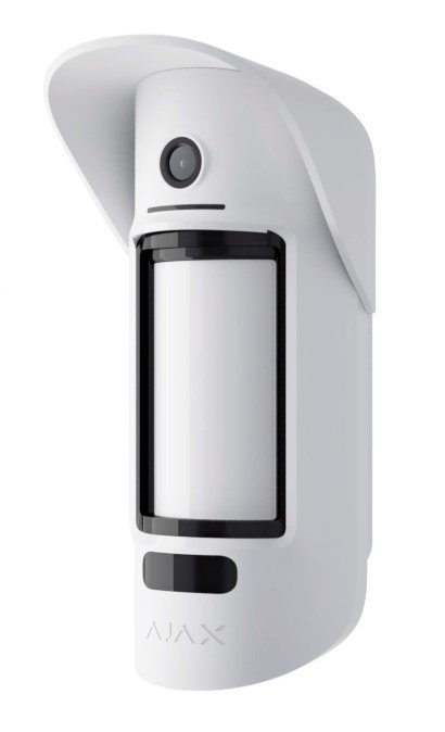 Извещатель охранный оптико-электронный радиоканальный (протокол Jeweller) УЛИЧНЫЙ с встроенной фотокамерой; f-раб.868,7...869,2 МГц; дальность зоны обнаружения 12м, угол обзора 88.5°, иммунитет к животным до 20кг; передачи фотографий на HUB2 и HUB 2 Plus (протокол Wings), разрешение фото 640х352, серия 1...5 снимков, ИК-подсветка; 4хCR123A (в комплекте); IP55, t-раб.-25...+60°С, 206х108х93 мм. Белого цвета
