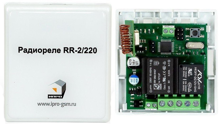 Радиоканальное силовое реле для работы с беспроводными датчиками и брелоками ИПРо (до 42 радиоустройств); f-раб. 433 МГц, дальность связи до 100 м; U-пит. пост. 12 В/перем. 220В, I-потр. 20 мА; перекидное реле (НЗ/НР), U-комут. 220 В, I-коммут. 10 А; t-раб. -30...+50 °С, габ.размеры 67х62х30 мм.