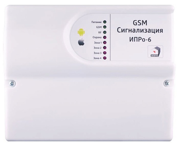 Прибор приемно-контрольный с GSM коммуникатором, 2 SIM; 4 проводных ШС, 6 беспроводных ШС, 2 проводные зоны для подключения датчиков температуры (DS18B20), до 6 беспроводных датчиков температуры "ИПРо"; 2 выход "ОК" (12В/300мА), 2 выхода "СК" (220В/10А), до 16 беспроводных выходов; вход для активного микрофона, выход для динамика, до 5 номеров оповещения; U-пит.220 В, под АКБ 12 В 2.3 Ач; t-раб.-30...+55°С, 197х164х60 мм.