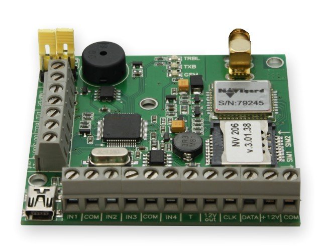 Прибор приёмно-контрольный с GSM коммуникатором, 2SIM, 4 ШС (до 8 в режиме удвоения зон), 4 выхода типа "ОК", до 15 номеров оповещения, управление TM, с клавиатуры NV 8516, брелоками NV PT 22/PT 44 (NV PB 26); удаленное управление через SMS, CLIP, NV Online Pro, облачный сервис NV Online; вход "Т" контрольных функций (тест АС/датчик температуры NV Temp (до 3 шт.)/контроллер ТМ), выход питания периферийных устройств 12 В 1 А, miniUSB, разъем антенны SMA, U-пит.9...15 В, I-потр.200 мА, t-раб.-25...+55°C, 71х68х22 мм. Поддержка облачного мобильного приложения NV HOME. Без антенны.