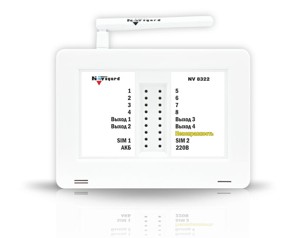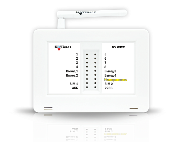 Прибор приемно-контрольный охранный с GSM коммуникатором, 2 SIM карты, 4(8)ШС, 4 выхода "ОК", вход "Т" контрольных функций, до 3-х датчиков температуры NV TEMP, вход ТМ(Wiegand), RS-485, miniUSB, U-пит.9…15 В, I-потр.200 мА, встроенный АКБ 1300мАч, SMA антенна, t-раб.+10...+45°C, 141х101х24 мм. Поддержка облачного мобильного приложения NV HOME.
