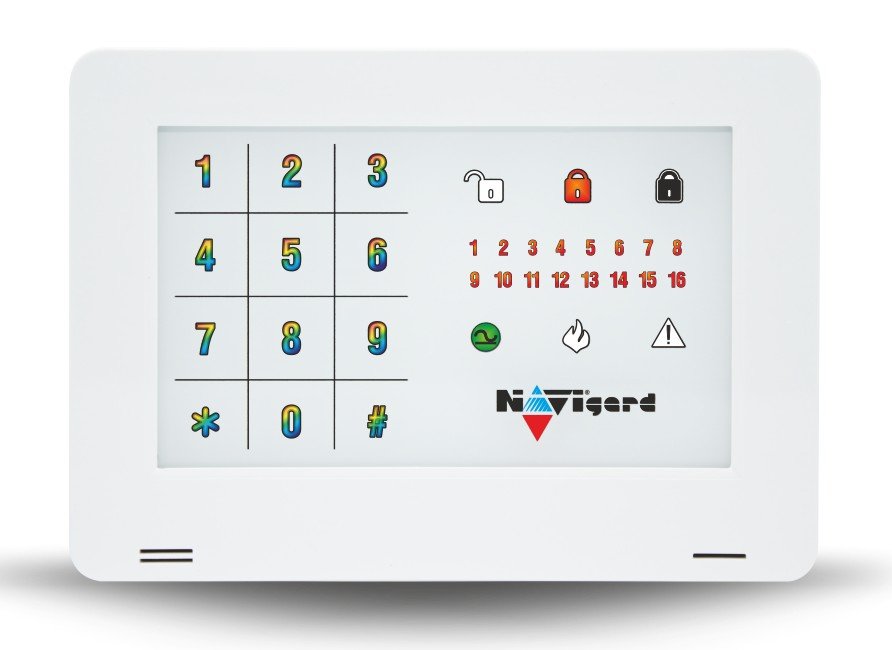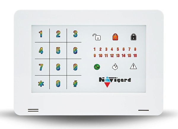 Светодиодная клавиатура на 16 зон с сенсорными кнопками. Постановка/снятие и управление передатчиками NV 8704/8804/1010c/204/205 и/или отдельными разделами; до 16 клавиатур на один передатчик NV 8704/8804; 2 входа/выхода. Размер: 16 х 10 х 2.5 см.