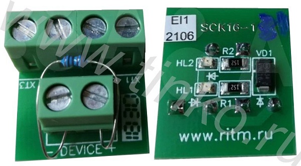 Плата подключения исполнительных устройств с резистором 270 Ом (включен в клеммный девайс).