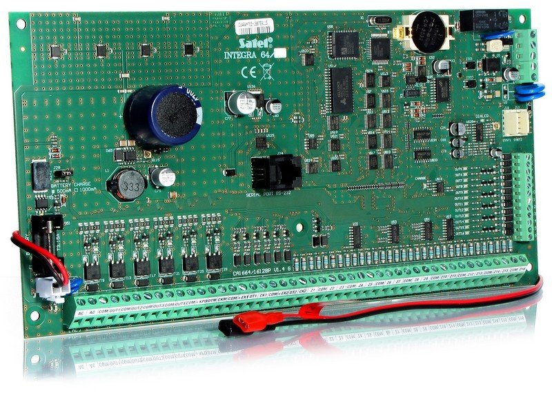 Плата охранно-пожарной сигнализации 16 зон - расширение до 64 (CA-64E и CA64-EPS, беспроводных до 48), 16 программируемых выходов (4 по 2A и 12 по 50мА) расширение до 64 выходов, 8 разделов, 32 подраздела, 16 телеф. номера для оповещения, 16 голосовых/речевых (1 CA-64SM). Макс. число беспроводных зон и выходов (ACU-100) 48. Устанав. в бокс CA-64 OBU. Питание без периферии 20VAC, 337 мА. I max нагр= 3,0А