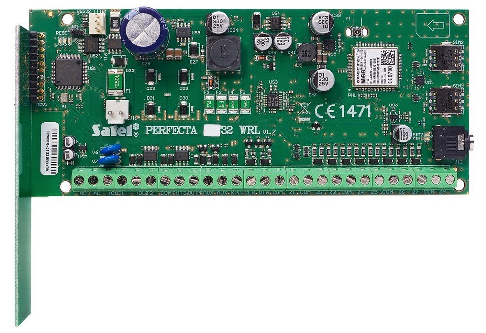 Прибор приемно-контрольный охранно-пожарный без корпуса с встроенным GSM коммуникатором и встроенным радиоканальным приемником; f-раб.433 МГц; 2SIM карты (GPRS, GSM, SMS); 8ШС (расширение до 32); до 32 радиоканальных устройств; до 4 радиоканальных сирен; до 4 радиоканальных клавиатур; 2 раздела; вход подключения микрофона; 2 выхода 12В/1А; 2 выхода 12В/500мА; расширение до 16 выходов; два выхода питания 12В/2А; RS-232(TTL); разъем подключения GSM антенны SMA; U-пит.18В(АС); I-потр.220мА; t-раб.-10...+55°С; 160x110 мм