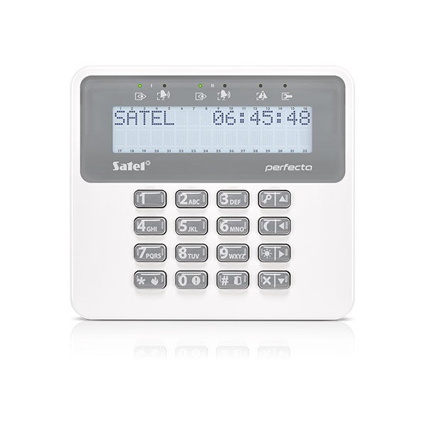 ЖК-клавиатура для приборов Satel PERFECTA; 2 строки по 16 символов; U-пит.12 В, I-потр.до 50 мА; t-раб.-10...+55°С, 139x124x22 мм