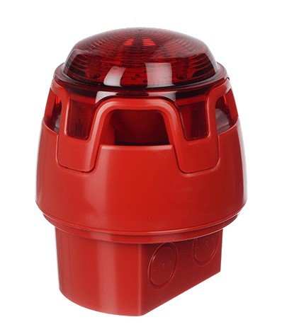 Оповещатель светозвуковой, 109дБ, 32 тона, строб-вспышка, корпус красный, вспышка красная, Uпит.12...29В, Iпотр.40мА, tраб.-25...+70°С, 100х122мм, высокая база IP65
