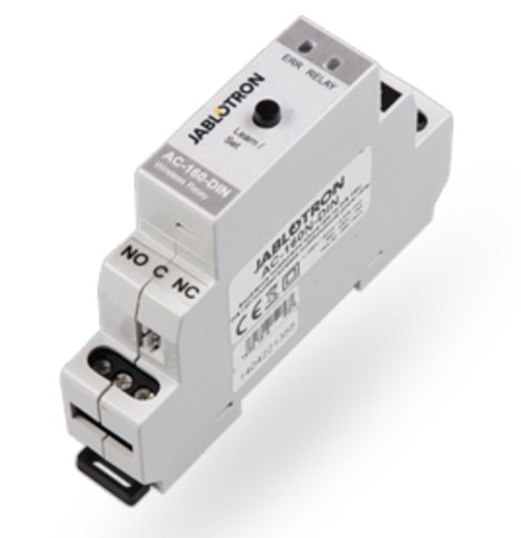 Многофункциональное радиоканальное реле для установки на DIN рейке для работы в системе Jablotron 100, рабочая частота 868,1 МГц.