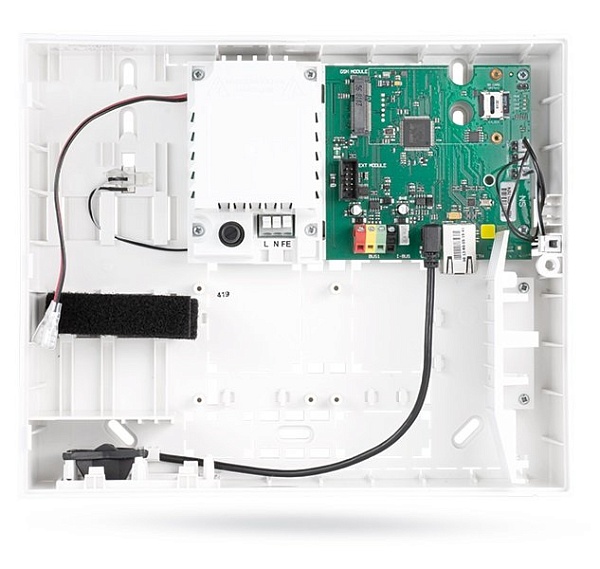 Контрольная панель с Ethernet коммуникатором, до 50 адресных или радиоканальных зон охраны, до 8 разделов, до 50 пользователей, до 32 программируемых выходов, оповещение на 5 адресов ПЦН, USB, LAN, считыватель SD карт до 4 Гб, U-пит.110...230 В, I-потр.до 1000 мА, корпус под аккумулятор 12 В 2.6Ач, t-раб.-10...+40°С, 268х225х83мм