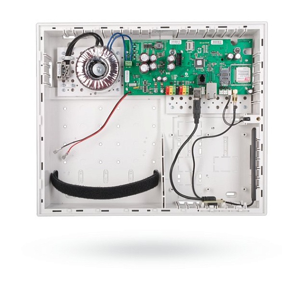 Контрольная панель с встроенным 3G GSM/GPRS и Ethernet коммуникатором, до 120 адресных или радиоканальных зон охраны (при использовании внешнего радиомодуля), до 15 разделов, до 300 пользователей, до 32 программируемых выходов, оповещение на 15 номеров пользователей, оповещение на 5 адресов ПЦН, USB, LAN, считыватель SD карт до 4 Гб, U-пит.220 В, I-потр.до 200 мА, корпус под аккумулятор 12 В 17 Ач, t-раб.-10...+40°С