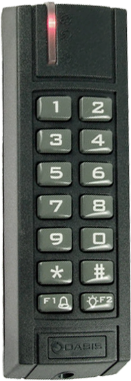 Считыватель RFID карт адресный с клавиатурой для панелей Jablotron JA-101 b JA-106, напряжение питания от шины контрольной панели 9...15 В, ток потребления 15 мА, для внешней установки, степень защиты оболочкой IP65, диапазон рабочих температур -25...+60°С, габаритные размеры 46х151.5х22.5 мм