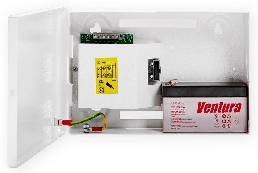 Источник вторичного электропитания резервированный, U-вх. переменное 187...242 В, U-вых. постоянное 13.5...14.2 В, I-ном. 1.5 А, I-макс. 2 А (до 1 мин.), выход "ОК" "наличие сети", свет.индикация режимов работы, защита от  КЗ, защита АКБ от глубокого разряда, t-раб. -20...+55°С, габ.размеры 126х169х60 мм, метал.корпус под аккумулятор 1,2 А/ч (в комплект поставки не входит)