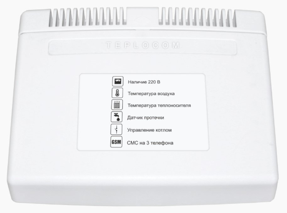 Прибор управления температурой с GSM коммуникатором, 1 вход подключения термодатчика, 1 выход управления нагрузкой 100 В / 100 мА, напряжение питания 220 В, резервный источник питания 3,6 В типоразмера 18650, диапазон рабочих температур +5…+40°С, габаритные размеры 140х105х40 мм. В комплекте: теплоинформатор, сетевой адаптер, датчик температуры, датчик протечки.