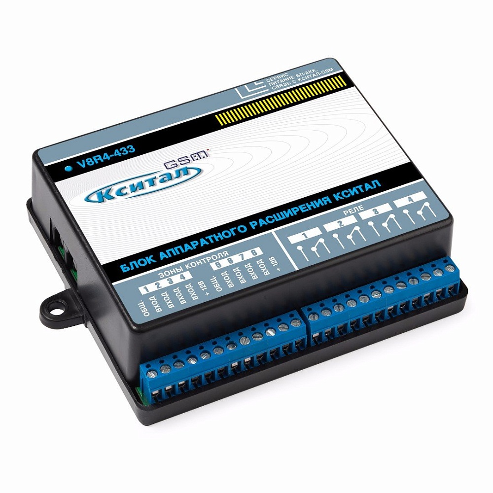 Блок аппаратного расширения для контроллеров КСИТАЛ, до 4 модулей в системе, работа с проводными КСИТАЛ ТД и радиоканальными датчиками температуры КСИТАЛ ТД433; 8 ШС; 4 релейных выхода (НЗ/НР), U-коммут.240 В, P-коммут.до 500 Вт; U-пит.220 В (адаптер в комплекте), под АКБ 12 В до 7 Ач, P-потр.не более 10 Вт; 150х110х40 мм. В комплекте: адаптер питания.
