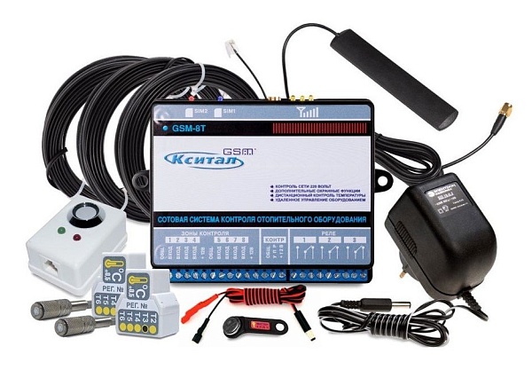 Контроллер с 2G GSM коммуникатором (GSM/GPRS), до 10 номеров оповещения (SMS и голос), передача показаний на сайт narodmon.ru; 8ШС, до 30 радиоканальных зон (при установленном радиомодуле РП433), вход TouchMemory, до 5 проводных термодатчиков; 3 релейных выхода (НЗ/НР), U-коммут.240 В, P-коммут.200 Вт; вход подключения микрофона; подключение модулей расширения V8R4-433 и V0R8-433, дальности линии связи до 200 м, до 4 модулей в системе; miniUSB; U-пит.220 В (адаптер в комплекте), под АКБ 12 В 1.2 Ач, P-потр.не более 10 Вт; t-раб.-35...+50°C, 150х110х40 мм. В комплекте: контроллер, адаптер питания, антенна выносная GSM SMA 2.5 м, считыватель Touch Memory, мастер-ключ Touch Memory, выносные цифровые термодатчики (2 шт.)
