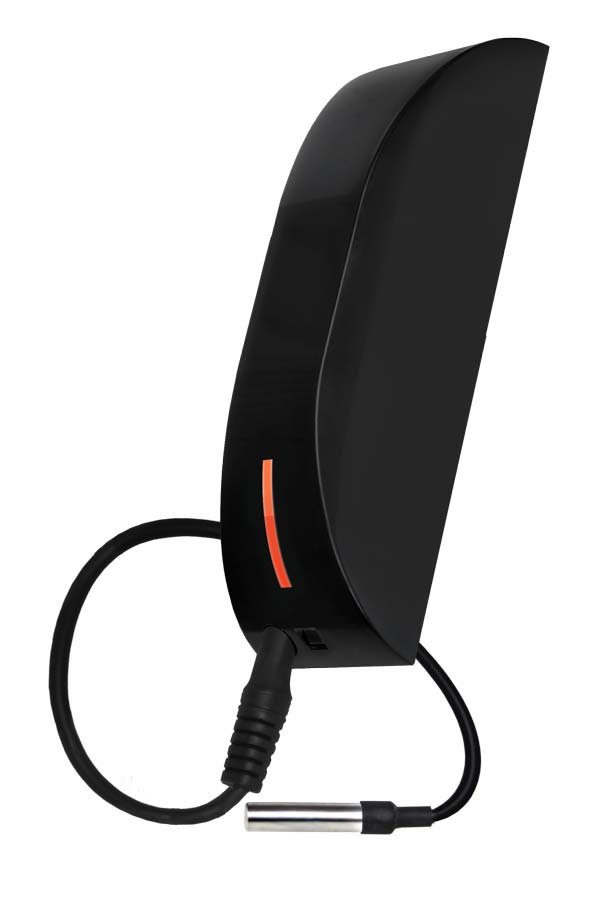 Датчик температуры с GSM оповещением на телефон хозяина (до 6 номеров). Раздельный контроль встроенного и выносного датчиков температуры. Автономная работа (от батареи) – до 1 года. Постановка на охрану при подаче питания.