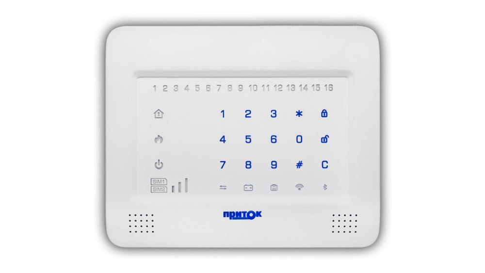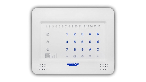 Сенсорная клавиатура для работы с приборами Приток-А-КОП на 16 ШС; встроенный считыватель NFC; до 64 идентификаторов записываемых в клавиатуру, RS-485, TouchMemory, miniUSB; U-пит.10.2...14.5 В, I-потр.150 мА; t-раб.-10...+50°С, 197х162х38 мм