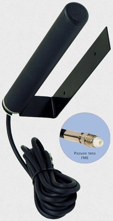 GSM антенна для промышленного GSM модема, пульта центрального наблюдения, стационарного GSM модема или сотового телефона, малогабаритная, FME разъем, длина кабеля 3 м, коэфф.усиления 5.5 dB, угловой настенный кронштейн, высота антенны 250мм, ветровая нагрузка 200км/ч