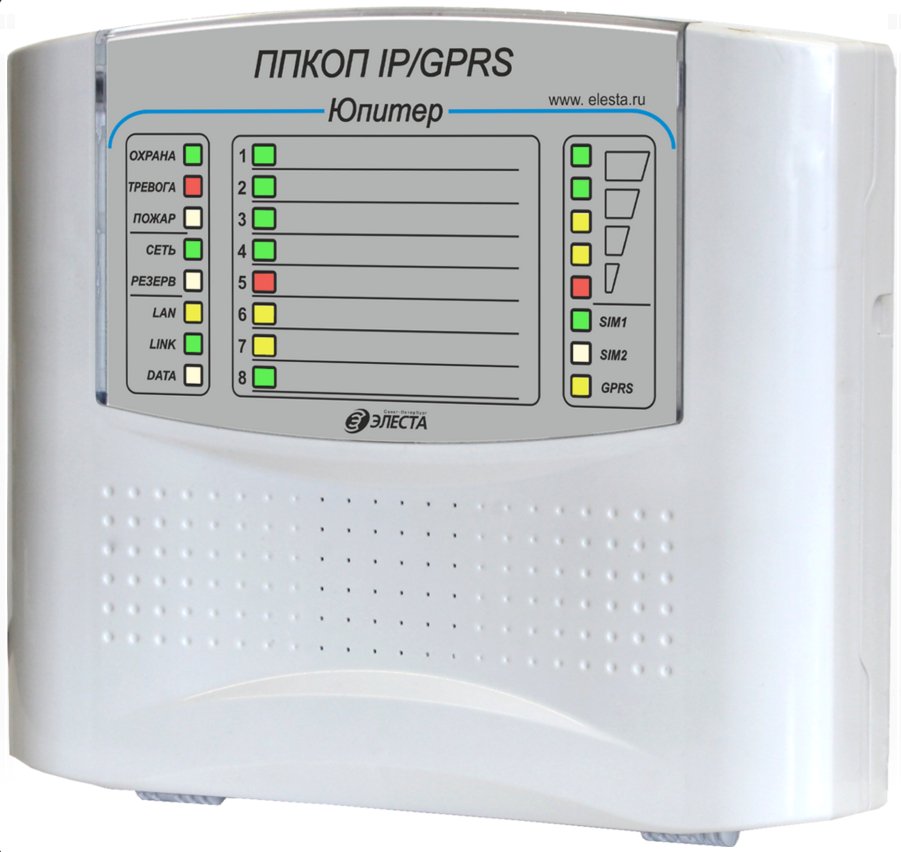 Прибор приемно-контрольный охранно-пожарный, 8 шлейфов сигнализации, напряжение шлейфа 22 В, ток шлейфа 3,6 мА, 2 SIM карты, 1 Ethernet, USB, вход ТМ, 4 выхода ПЦН, 2 выхода питания извещателей 12 В 100 мА каждый, 1 выход сирены 12 В 100 мА, напряжение питания 12 В, ток потребления до 650 мА , габаритные размеры 250х220х52 мм, пластиковый корпус