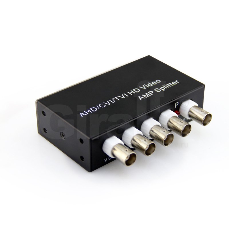 Разветвитель видеосигнала AHD/CVI/TVI/CVBS (1вх./4вых.); 60 МГц ; DC12В/250мA ; 50 х 110 х 30мм; Грозозащита и защита от электростатического разряда CLASS 4
