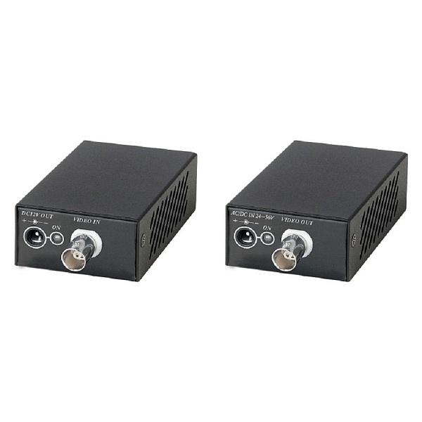 Комплект (передатчик + приёмник) для передачи Composite Video (до 960H/700ТВЛ) и питания по одному коаксиальному кабелю до 800м; Передатчик: вх. - BNC, вых. - Роз.2,1х5мм(DC12V)/BNC. Приёмник: вх. - BNC/Роз.2,1х5мм(DC24-56V/AC18-35V), вых. - BNC; Передатчик питается от линии; Выходное напряжение DC12V до 12W; -40°...+70°C; 49.2x112.5x25.2мм; БП приёмника в комплект не входит; Подходят модели БП: SWP241250 (DC24V/30W), SWP480830 (DC48V/40W), SWP551260 (DC55,5V/70W)