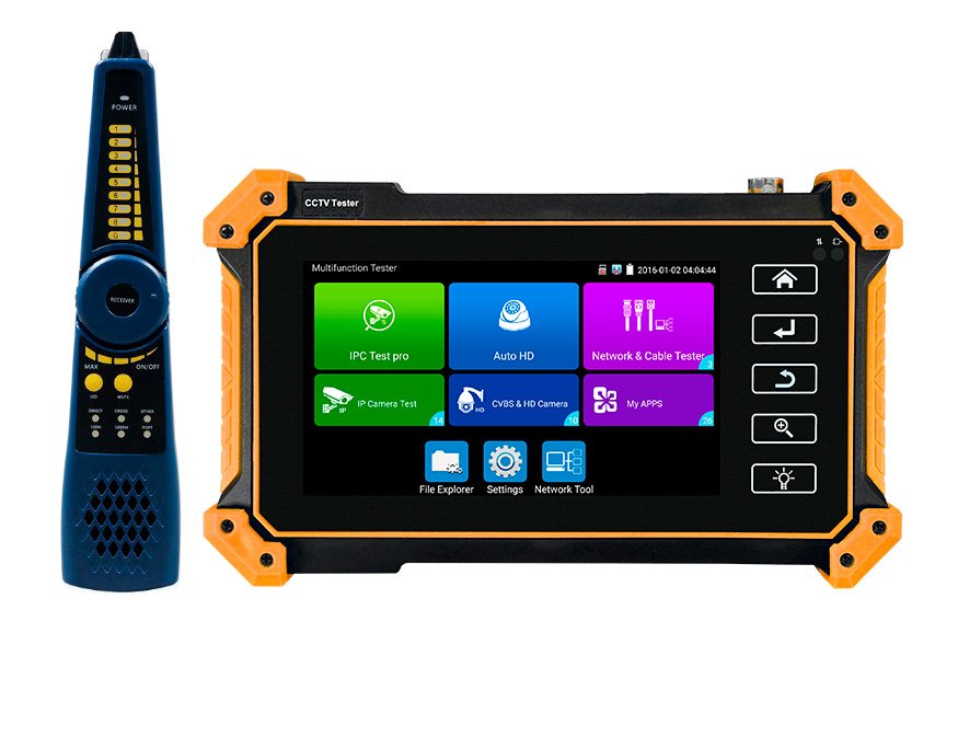 Универсальный монитор-тестер AHD/CVI/TVI/CVBS и IP-видеосистем. Базовая модель + детектор кабельной трассы. Возможности: поддержка ONVIF; 8Mp TVI, 8Mp CVI, 8Mp AHD; доступ в Web-интерфейс камеры с помощью встроенного браузера; Android - Приложения для управления камерами c возможностью самостоятельной установки/удаления ПО; Audio/Video плееры; запись аудио/Video потоков, скриншотов на карту памяти; кабельный рефлектометр с интерфейсом RJ-45; измерение уровней видеосигнала, генератор тестовых таблиц; проверка UTP-кабеля; тестирование IP-сетей; RTSP; измерение РоЕ-напряжения; генератор CVBS; PTZ-управление; мониторинг интерфейса RS485; источник питания PoE (48В, 24Вт); источник питания DC12В/3А. Разъемы: 2хRJ45; HDMI и VGA входы; BNC; клеммы(RS485); jack 3.5мм вход, слот MicroSD. Характеристики: разрешение экрана - 5" 1920x1080; Wi-FI IEEE 802.11n 150mbit/s; батарея Li-Pol 7.4В 3350mA/ч; 183x36.5x110мм; -10°С до 50°С.