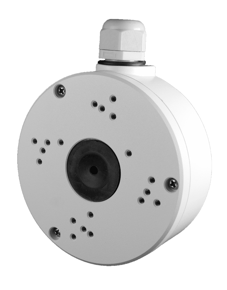 Монтажная коробка для камер ; Совместима с камерами: TR-D2121IR3 v4, TR-D2141IR3, TR-D2142ZIR3, TR-D2181IR3, TR-D2122ZIR3, TR-D2221WDIR4, TR-D2222WDZIR4, TR-D2121IR3W v2, TR-D2123IR6 v4, TR-D2143IR6, TR-D2183IR6, TR-D2223WDIR7, TR-D2223WDZIR7, TR-D2224WDZIR7, TR-D2S5, TR-D2S5-noPoE, TR-D8121IR2 v4, TR-D8141IR2, TR-D8221WDIR3, TR-D3121IR1 v4.; Ø112.5×45.5 мм; –40 °… +60 °C.; Алюминиевый сплав; Предусмотрен вывод расположенных внутри кабелей через борт и основание. В комплект включено водонепроницаемое уплотнительное кольцо — для защиты от влаги. Резьба — G1/2"