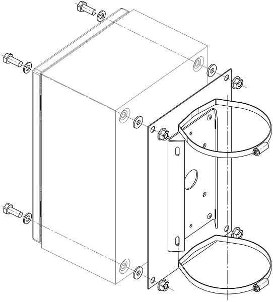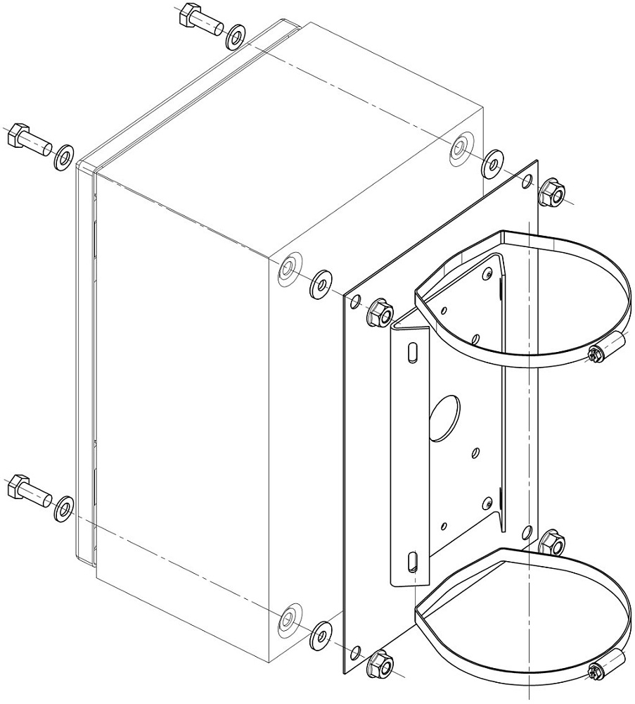 Крепление ШМ-1 (2) на квадратную и круглую опору до 115...135 мм; 280х180х22 мм.