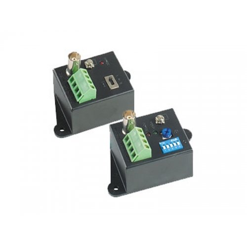 Комплект для передачи видеосигнала по витой паре до 1500м (CVBS), до 800м (AHD(720p); Передатчик: Вх. - BNC, Вых. - Клм. Приёмник: Вх. - Клм., Вых. - BNC; 3 уровня усиления, защита от скачков напряжения; DC 12В / 75мА.( БП 2 шт в комплекте ); -40°...+55°C.; 43.2x45.2x74мм