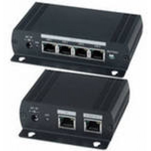 Комплект (передатчикТ + приемник VE02ALR) для усиления и каскадной передачи VGA-сигнала (до 1600х1200 @85Hz) и стерео аудиосигнала. Дальность передачи: 300 м (цв. сигнал) на каждый каскад. 1 Видеовход 15-Pin (скв), 1 аудиовход (скв). 4 выхода RJ-45